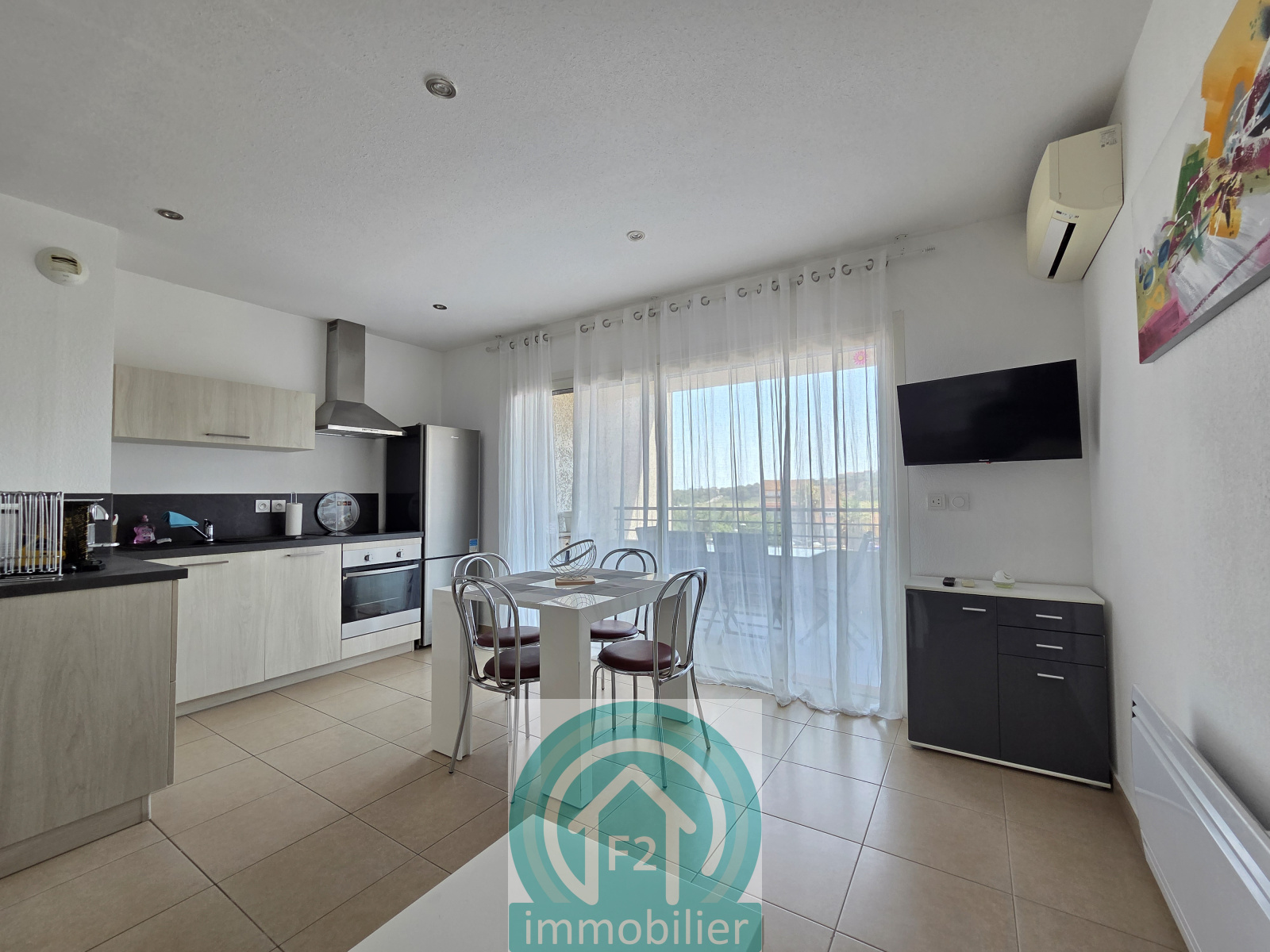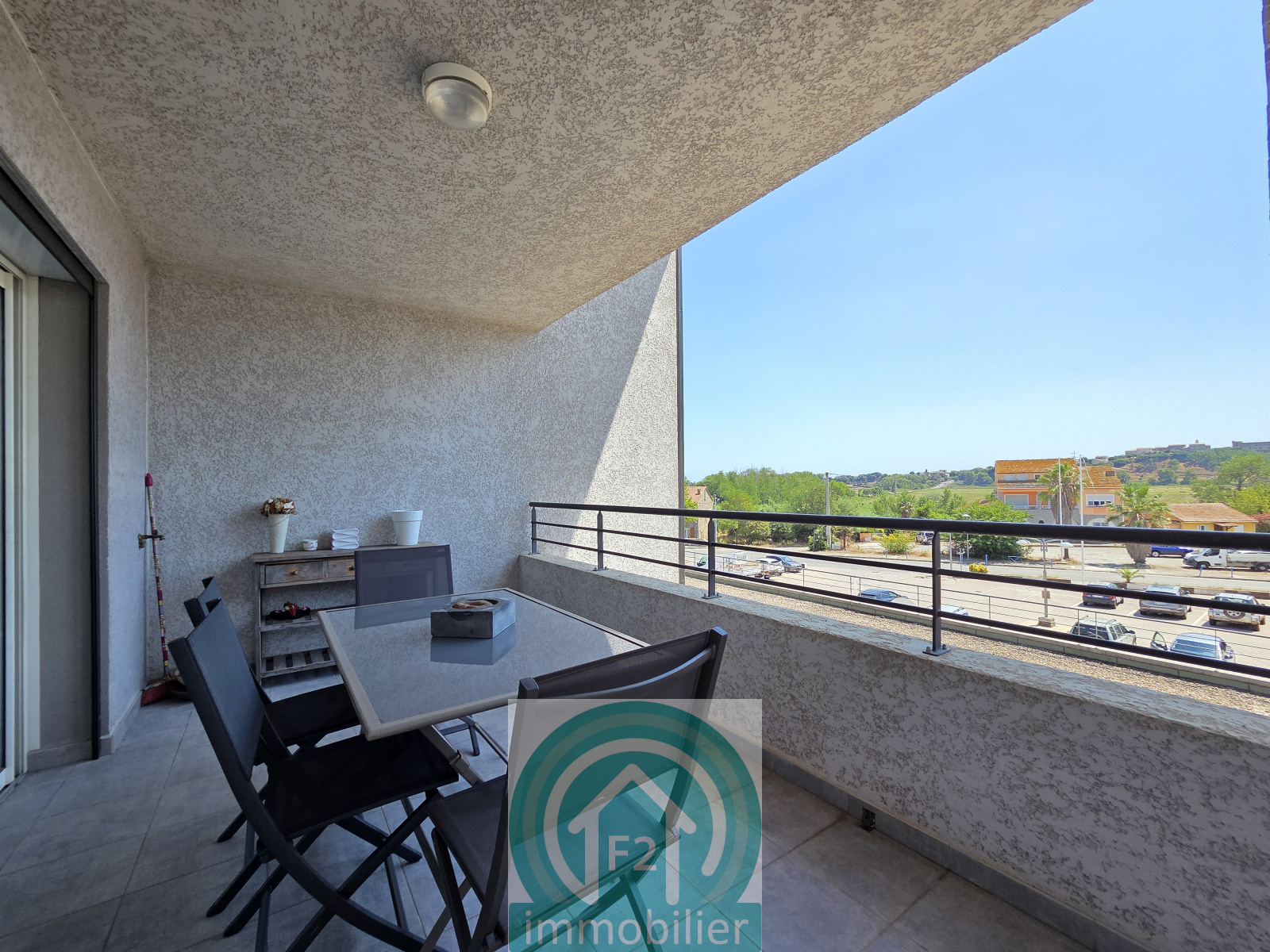 Cet appartement T2 est situé dans un immeuble avec ascenceur, au premier étage, il bénéficie d'une terrasse couverte plein sud avec vue sur le Fort d'Aleria. L'appartement est entièrement meublé et équipé, il se compose d'une pièce à vivre salon-cuisine, une entrée, un cellier, une salle d'eau avec wc, et une chambre avec un placard mural aménagé.