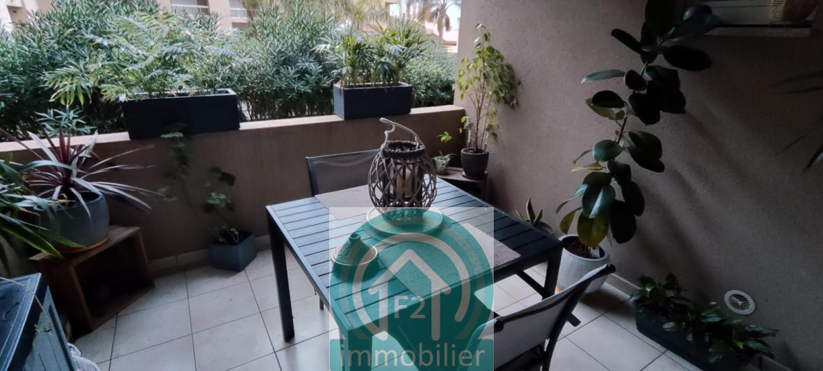 A louer, appartement T2 de 40m² comprenant une chambre, une salle d'eau, un wc, un coin-cuisine, et un salon ouvrant sur une terrasse couverte.